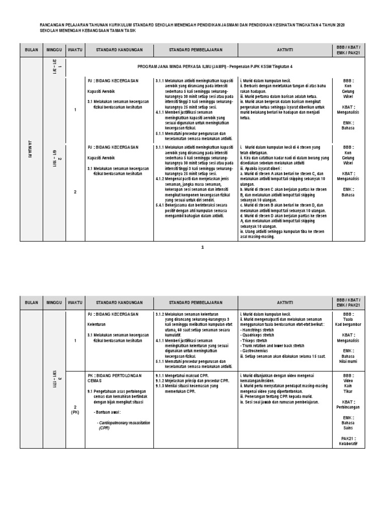 Rancangan Tahunan Pjpk Tingkatan 4 Pdf